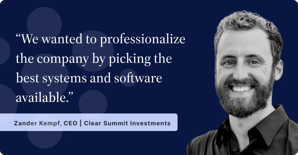 As Clear Summit scaled, its technology stack became increasingly fragmented. To ensure they were using the best possible tool for their needs, Clear Summit’s team left InvestNext in 2021 and explored several other major investment management platforms, including Groundbreaker and AppFolio Investment Manager. Each tool solved part of the problem, but none of the alternatives delivered a cohesive, investor-friendly system that could scale with the business.